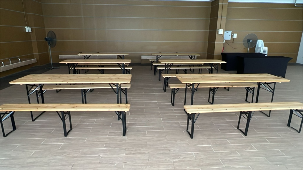 We have a large selection of equipment like chairs, tables, tentages, electrical equipment.