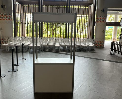 We have a large catalogue of other accessories available that goes well with our exhibition panels. Check with our service staff and we will get back to you on the availability of the equipment you require. We also have temporary structures such as tentages, chairs and tables or cooling solutions for your facility needs