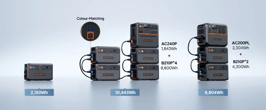 Compatibility: Designed for BLUETTI AC200P L and AC240P. The AC240P supports up to 4 B210P units; the AC200P L supports up to 2 units (extra cable required for AC200P L, sold separately).